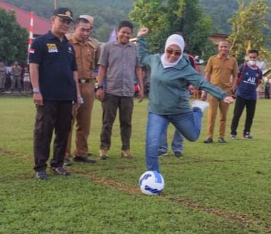 MAMUJU – Pertandingan sepakbola Bupati Cup Mamuju 1 resmi dibuka Bupati Mamuju Sitti Sutinah Suhardi, Selasa (28/6/2022).